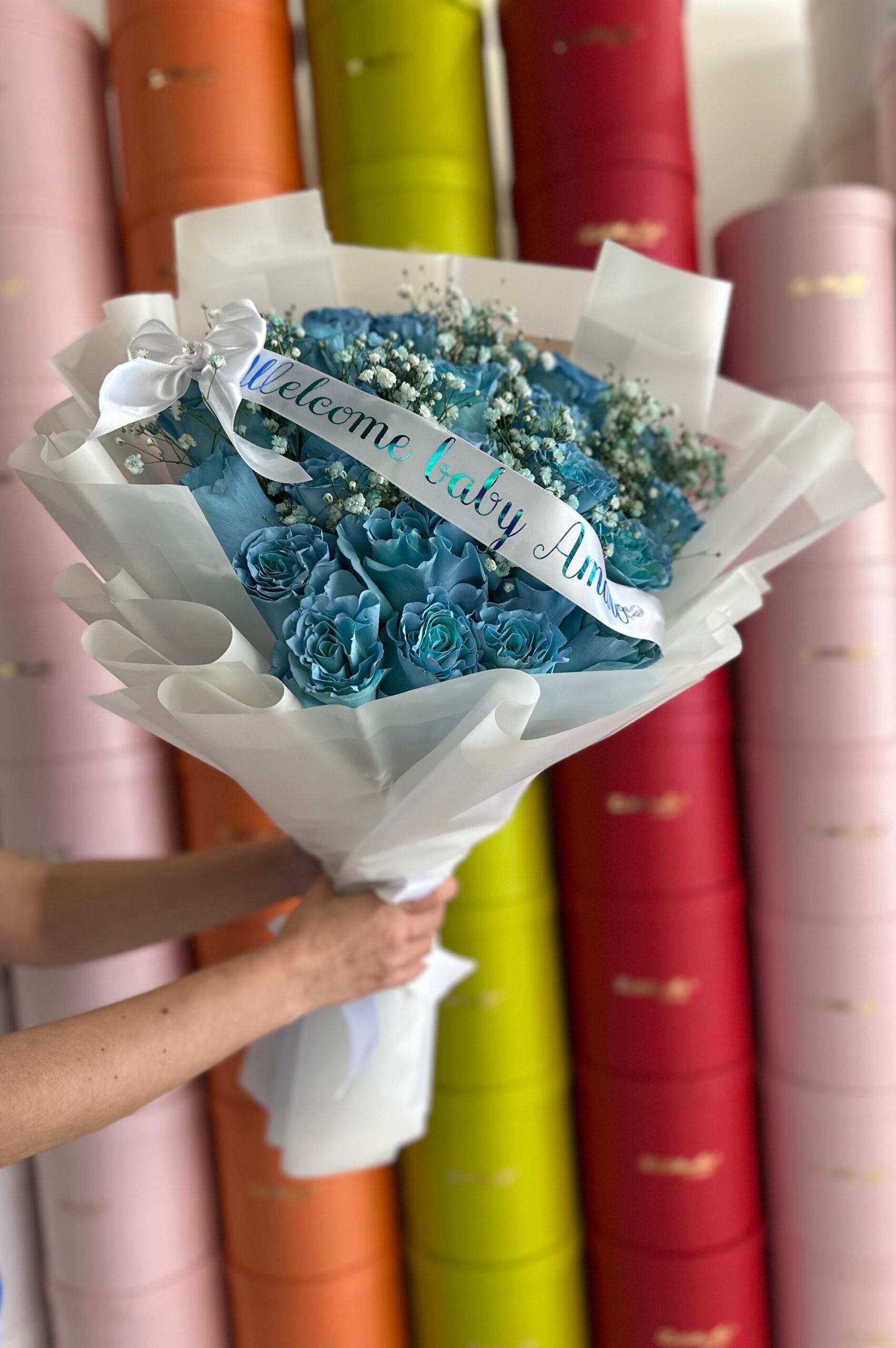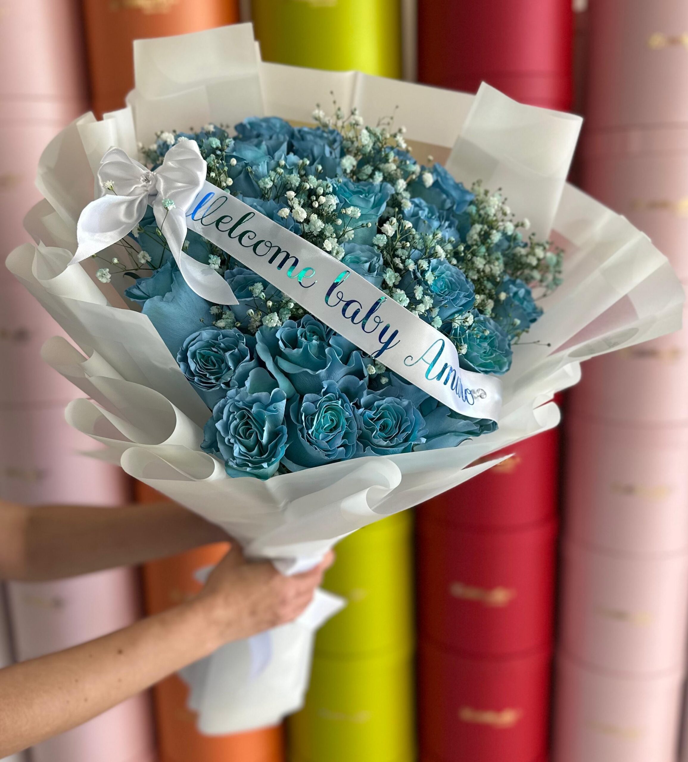 Each stem is chosen with care and finished with a personalized ribbon, making it the perfect gift to welcome a precious baby boy into the world.