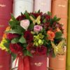 This stunning purple arrangement features a mix of deep lavender and vibrant violet blooms, creating a rich tapestry of color. Elegant stems of irises and fragrant lilacs are interspersed with delicate lavender sprigs and clusters of amethyst-hued roses.