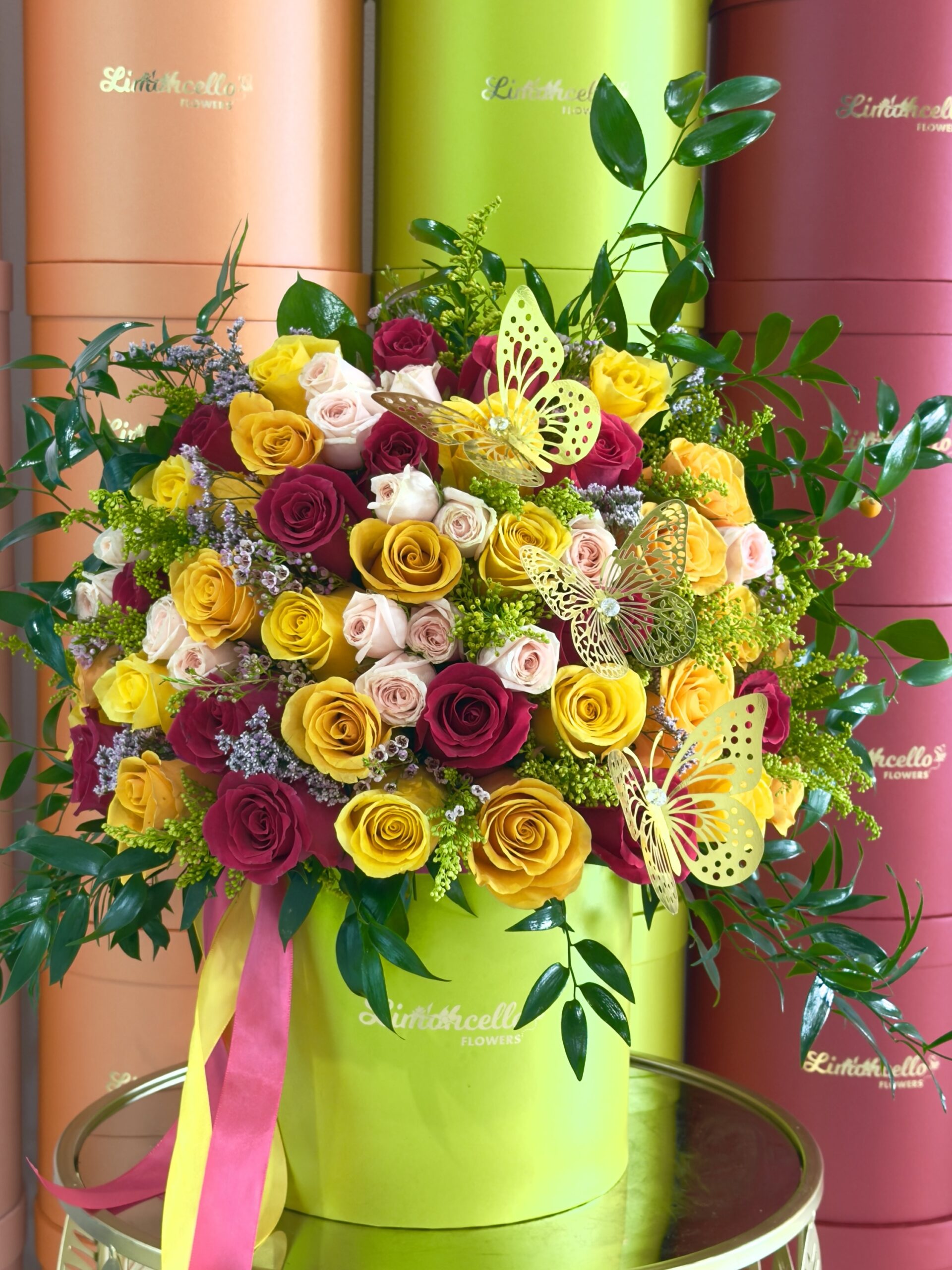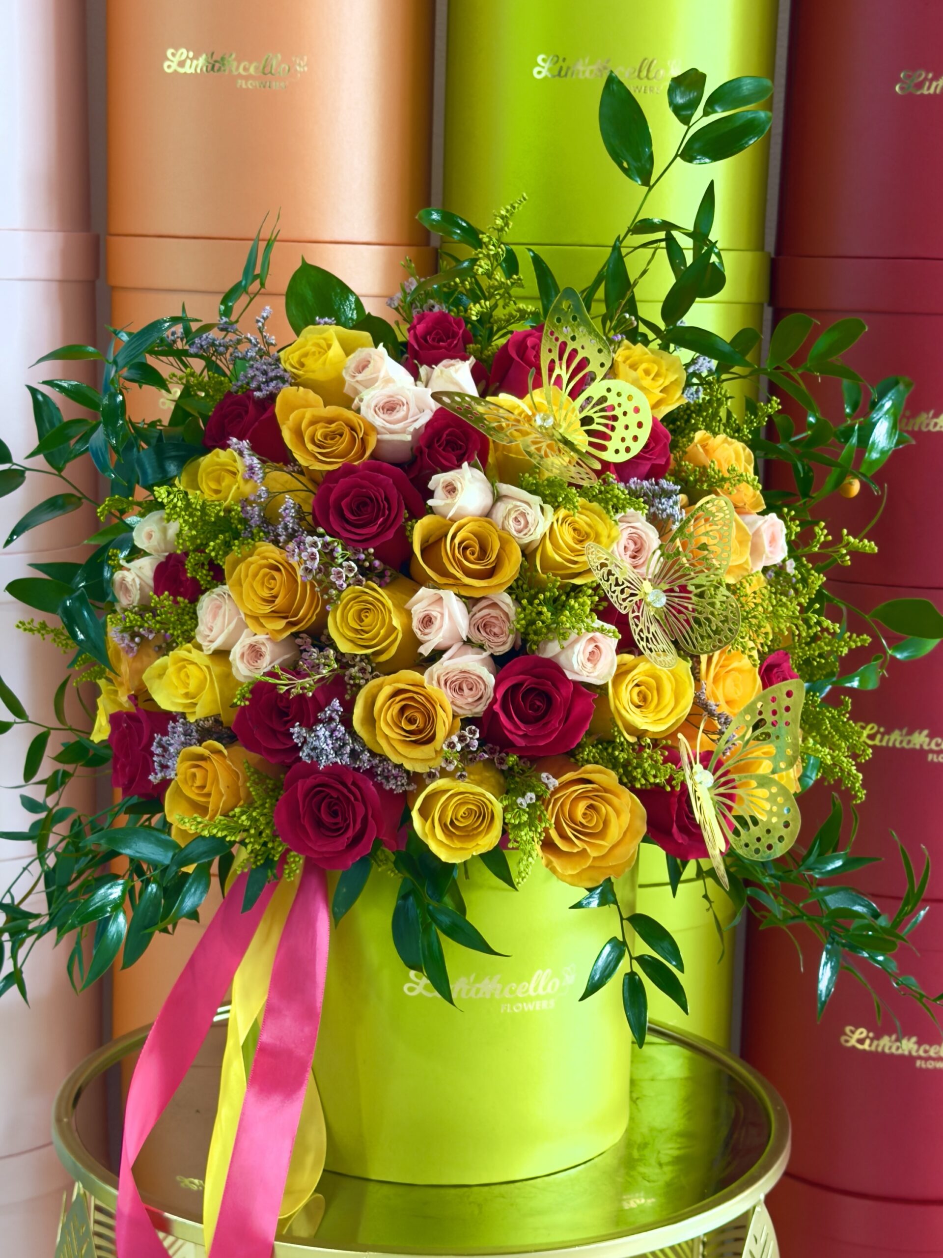“A burst of colors, a melody of petals 🌸✨ — this vibrant arrangement was made to fill any space with joy, love, and the beauty of life itself. Because every color tells a story, and together they bloom in perfect harmony.”